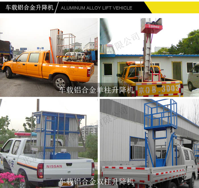 車載式升降機是為提高升降機的機動性,將升降機固定在電瓶搬運車或貨車上,它接取汽車引擎動力,實現(xiàn)車載式升降機的升降功能。以適應廠區(qū)內(nèi)外的高空作業(yè)。 廣泛應用于賓館、大廈、機場、車站、體育場、車間、倉庫等場所的高空作業(yè);也可作為臨時性的高空照明、廣告宣傳等。